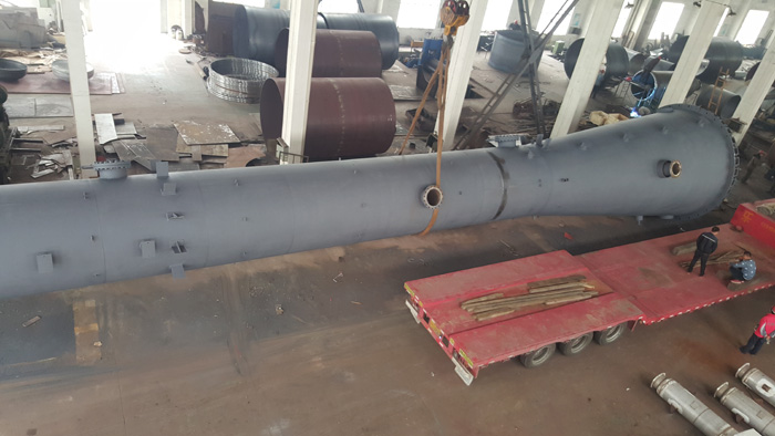 我公司最新制作的脫異丁烷塔,長達60.3米,容積196立方,凈重63500千克,刷新了我公司實際項目制作最長塔器記錄,在設備、廠房大門均完好無損的情況下,成功竣工并裝運出車間。